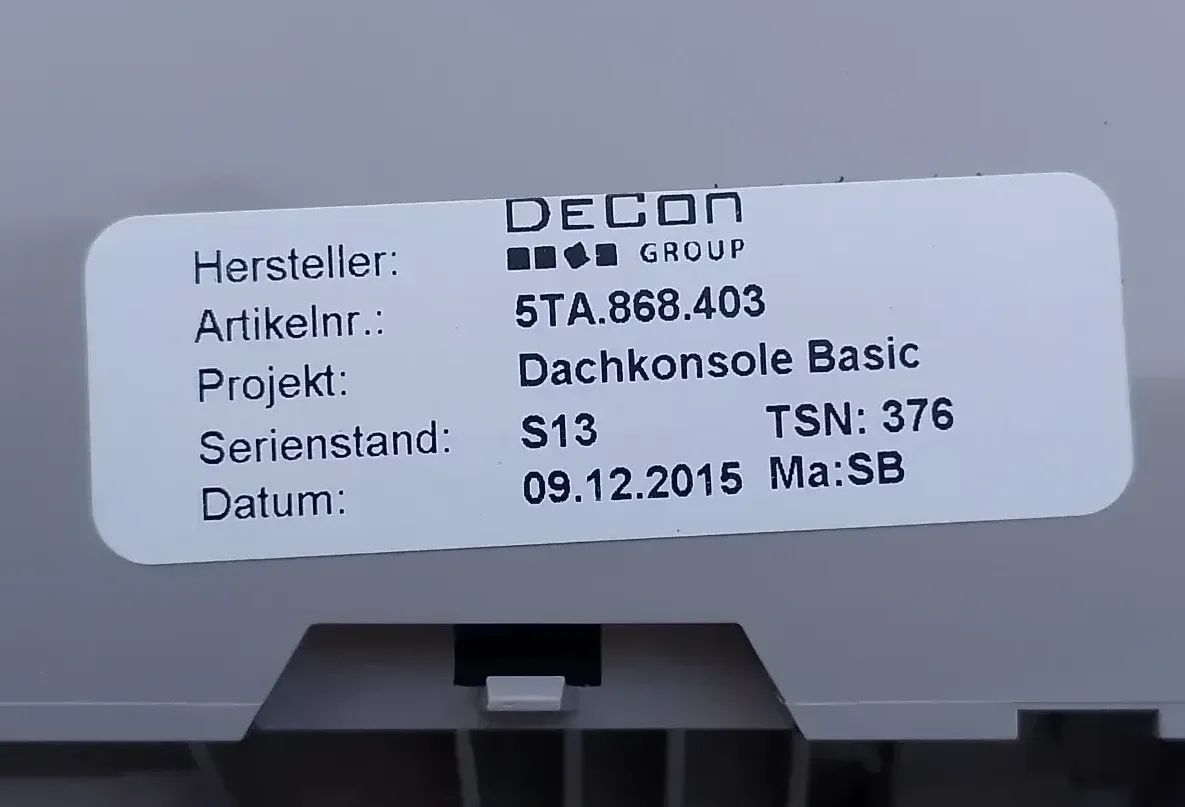 Deckenkonsole Staufach Innenleuchte grau Original VW Touran 5T
