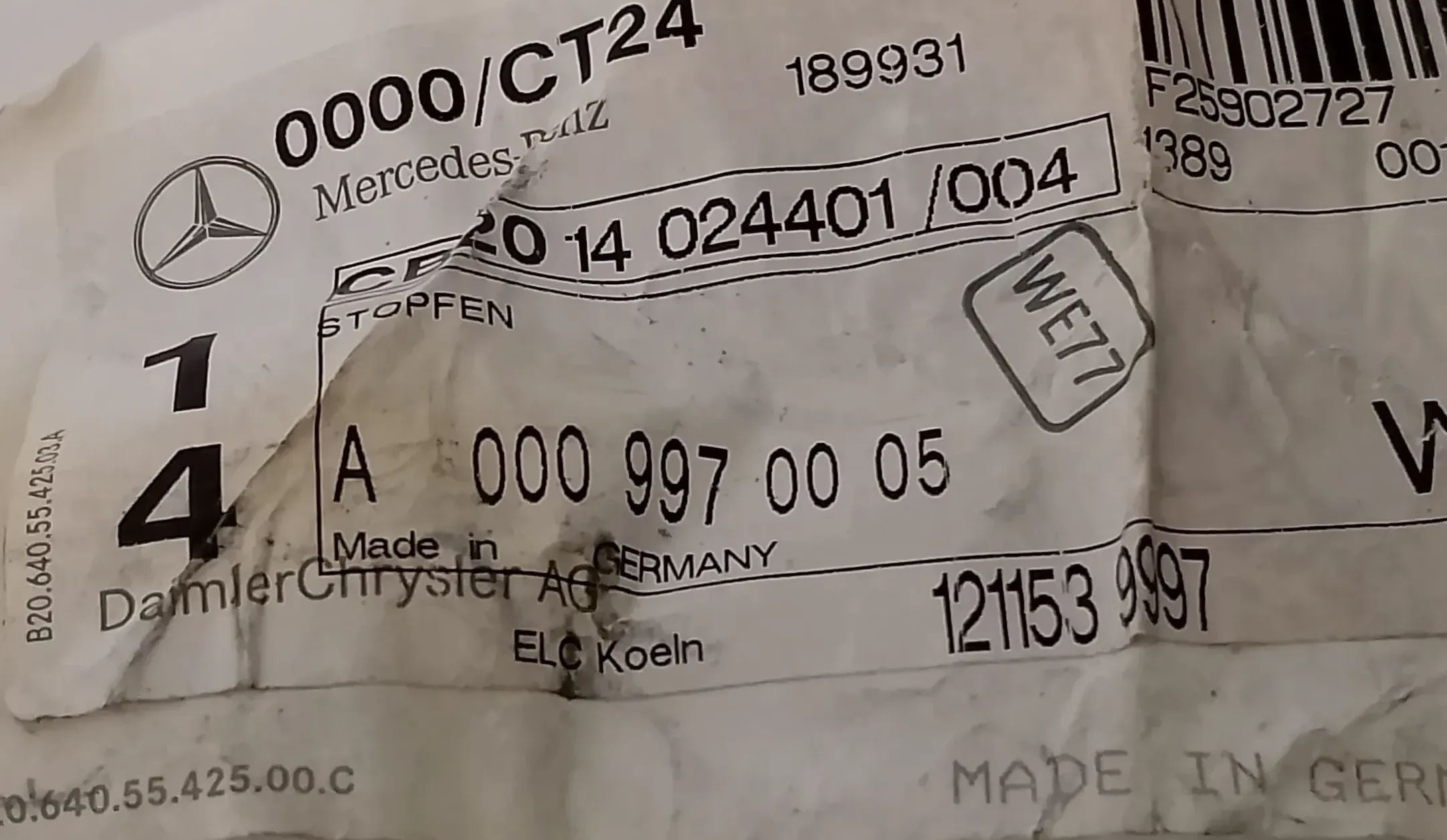 NEU Set Stopfen Kappe Abdeckung Stecker Original Mercedes A0009970005