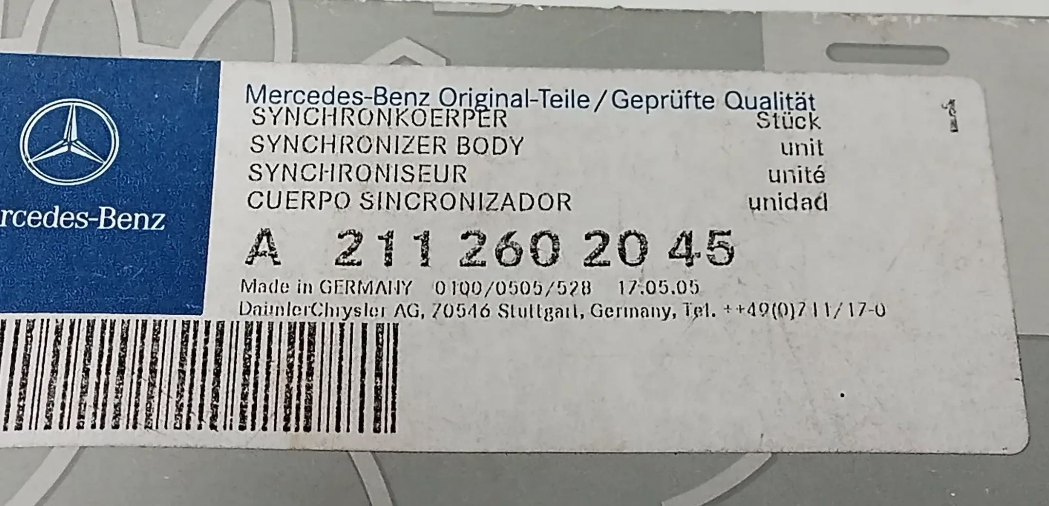 NEU Synchronkörper Schaltgetriebe 1./2 Gang Original Mercedes MB 211.260.20.45