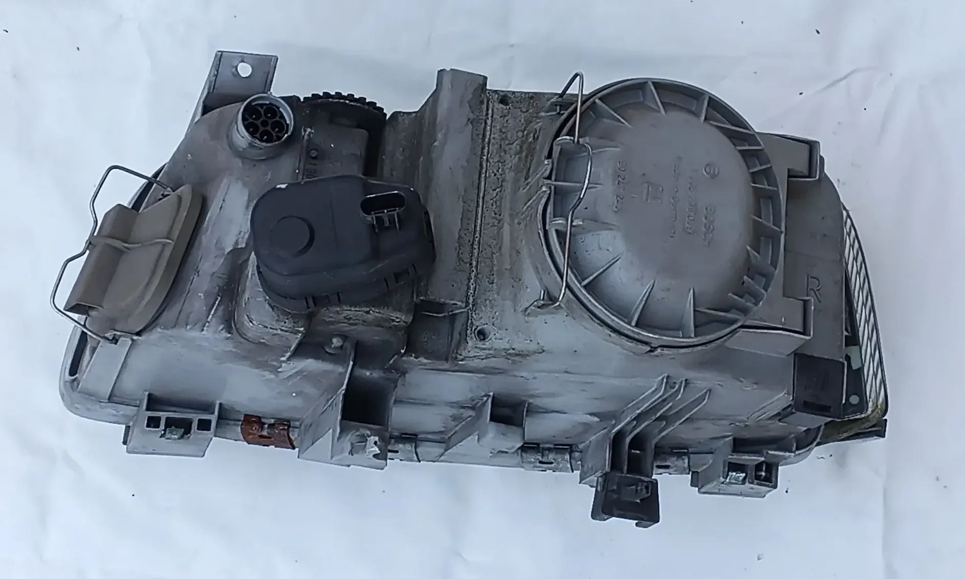 Der Scheinwerfer befindet sich in einem guten Zustand, alle Halter sind intakt.