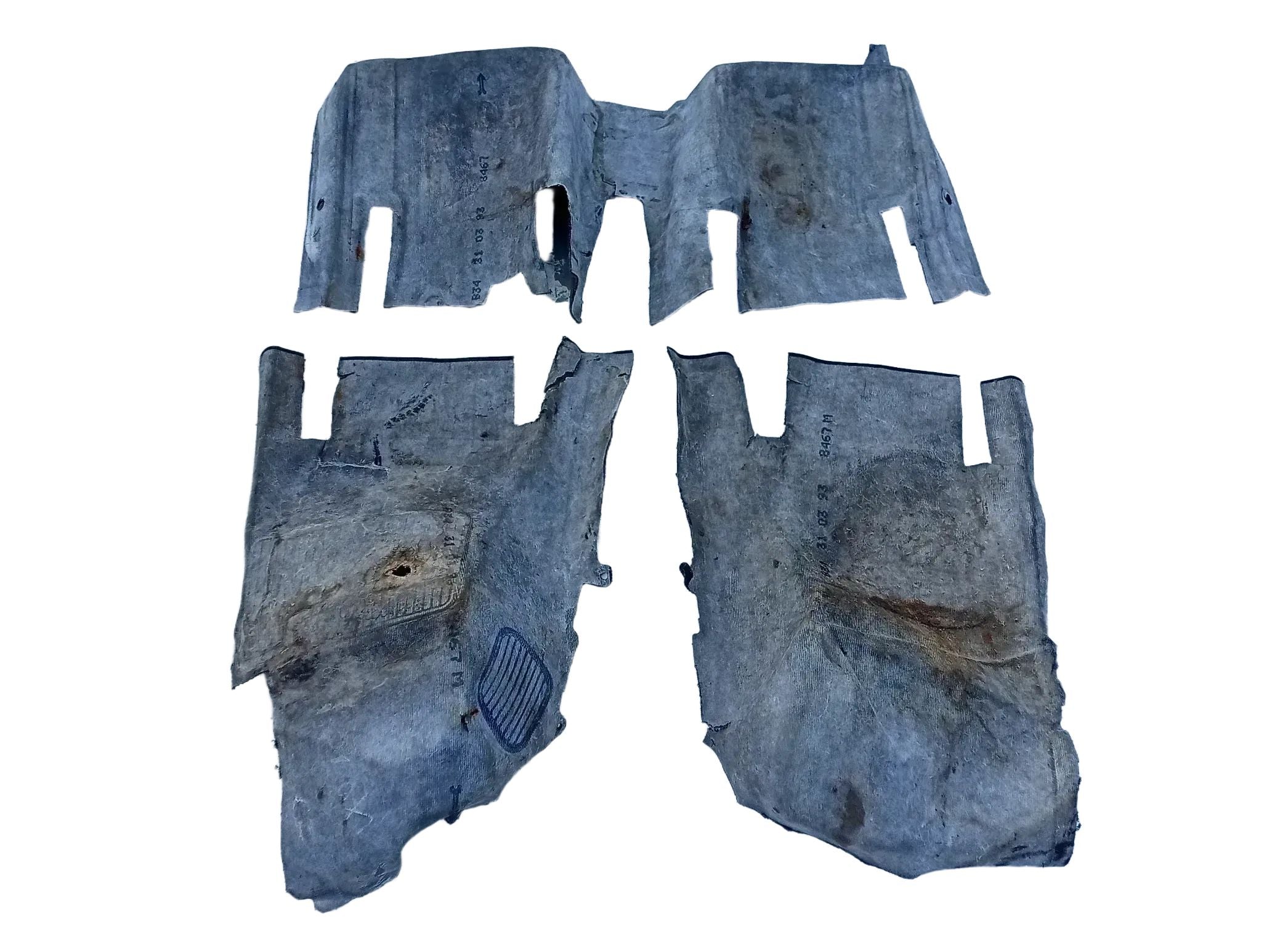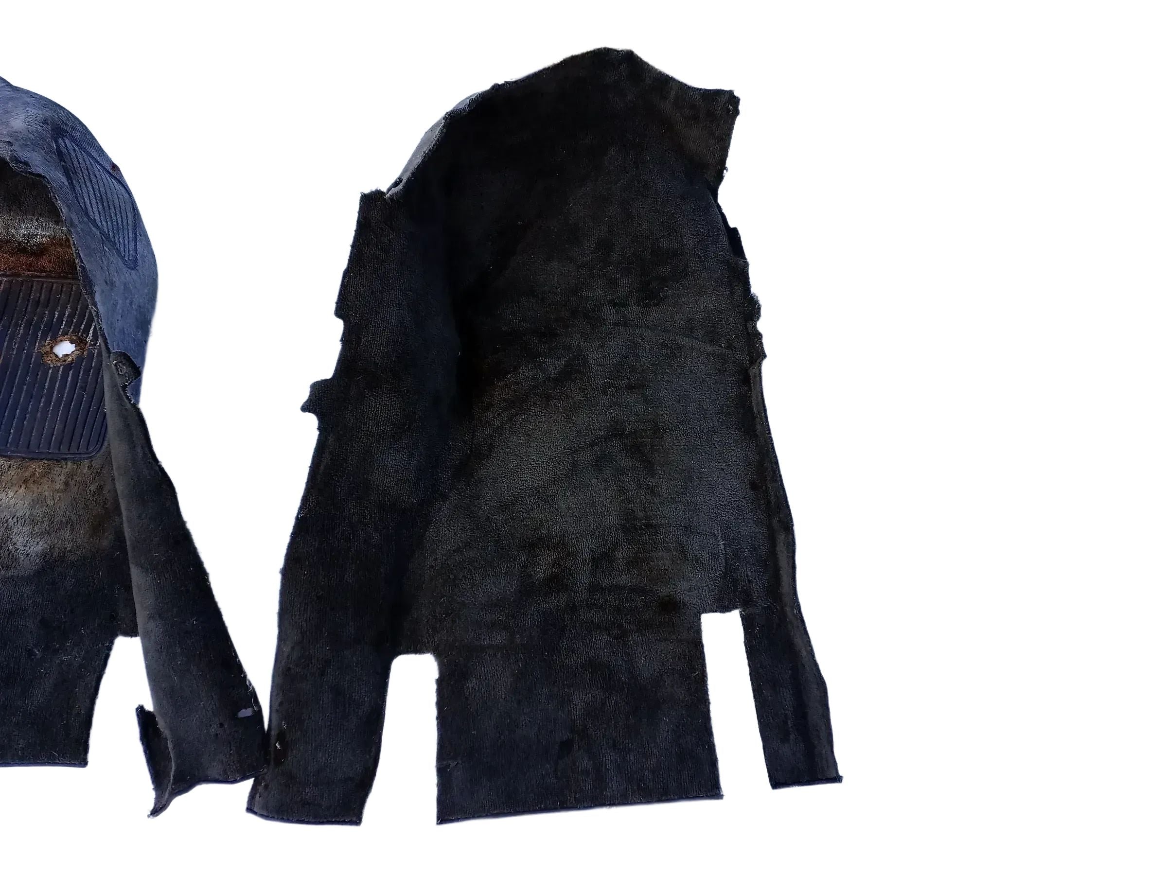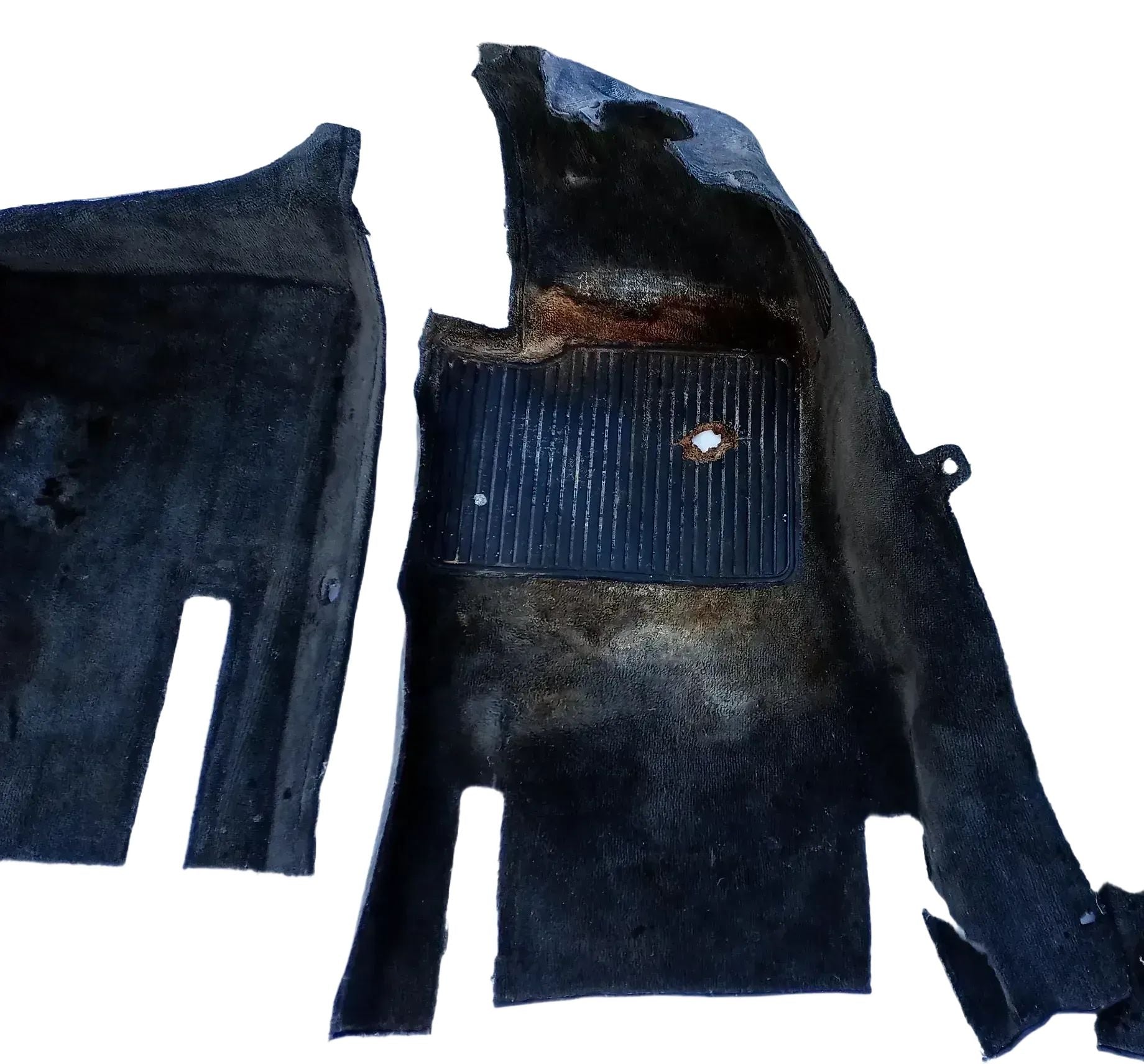 stark verunreinigt, auf der Fahrer Seite ist in der Gummimatten ein Loch